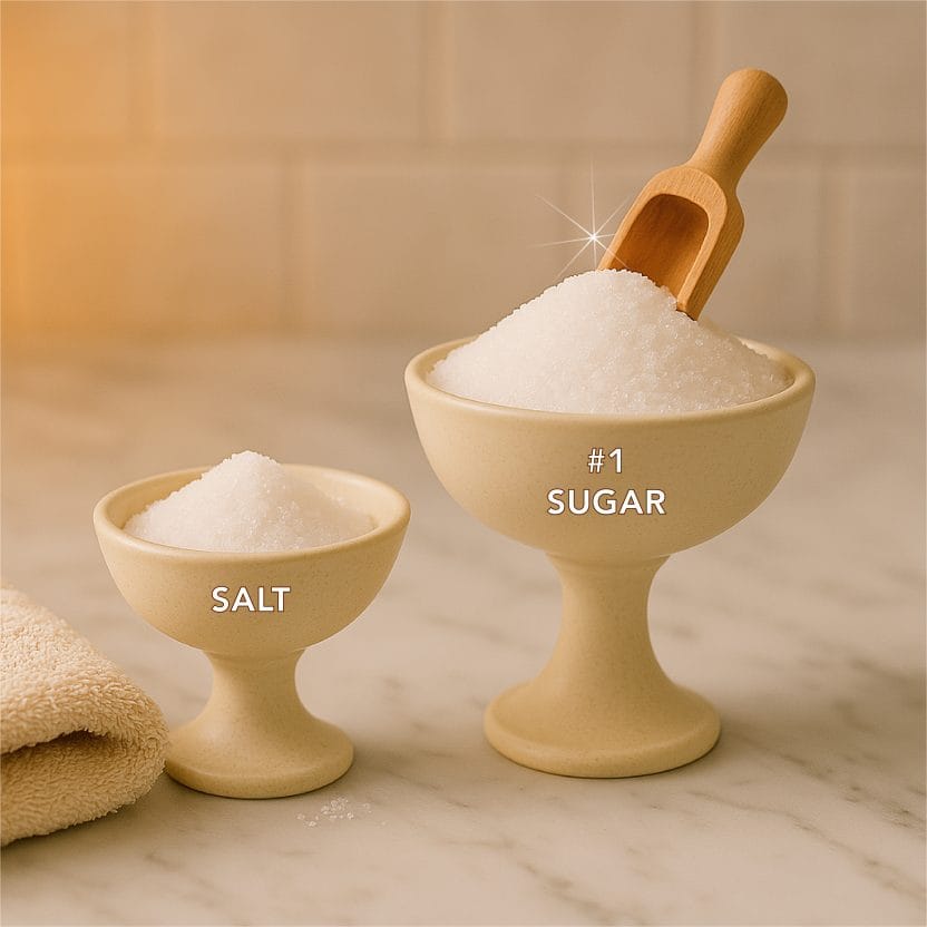 • Salt’s drying dilemma: Salt scrubs can strip away your skin’s natural oils, leaving you feeling tight and flaky instead of supple, smooth, and moisturized.